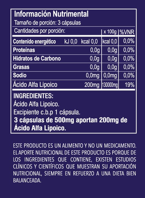 Ácido graso que contiene azufre, siendo un gran antioxidante que auxiliar en una dieta que elijas para potenciar la vida del sistema celular, disminuyendo los signos de la edad. Por no hablar de que es una pieza clave a la hora de transformar la glucosa en energía para las necesidades del cuerpo.