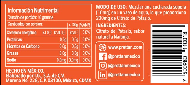Citrato de potasio (Polvo sabor naranja)