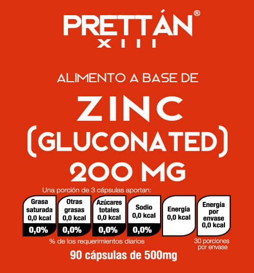 3 cápsulas de 500 mg aportan 200 mg de gluconato de zinc.